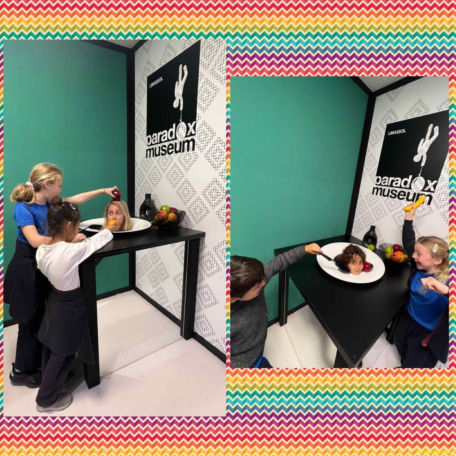 Year 3 were the first visitors of a new spectacular place at the Limassol Marina. Paradox Museum gives children the opportunity to be challenged by fascinating concepts and have an interactive experience with the exhibits. This museum shows how the brain and senses can be tricked by a combination of visual and tactile stimuli.