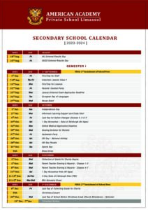 American Academy  > Secondary School Calendar 2023-2024