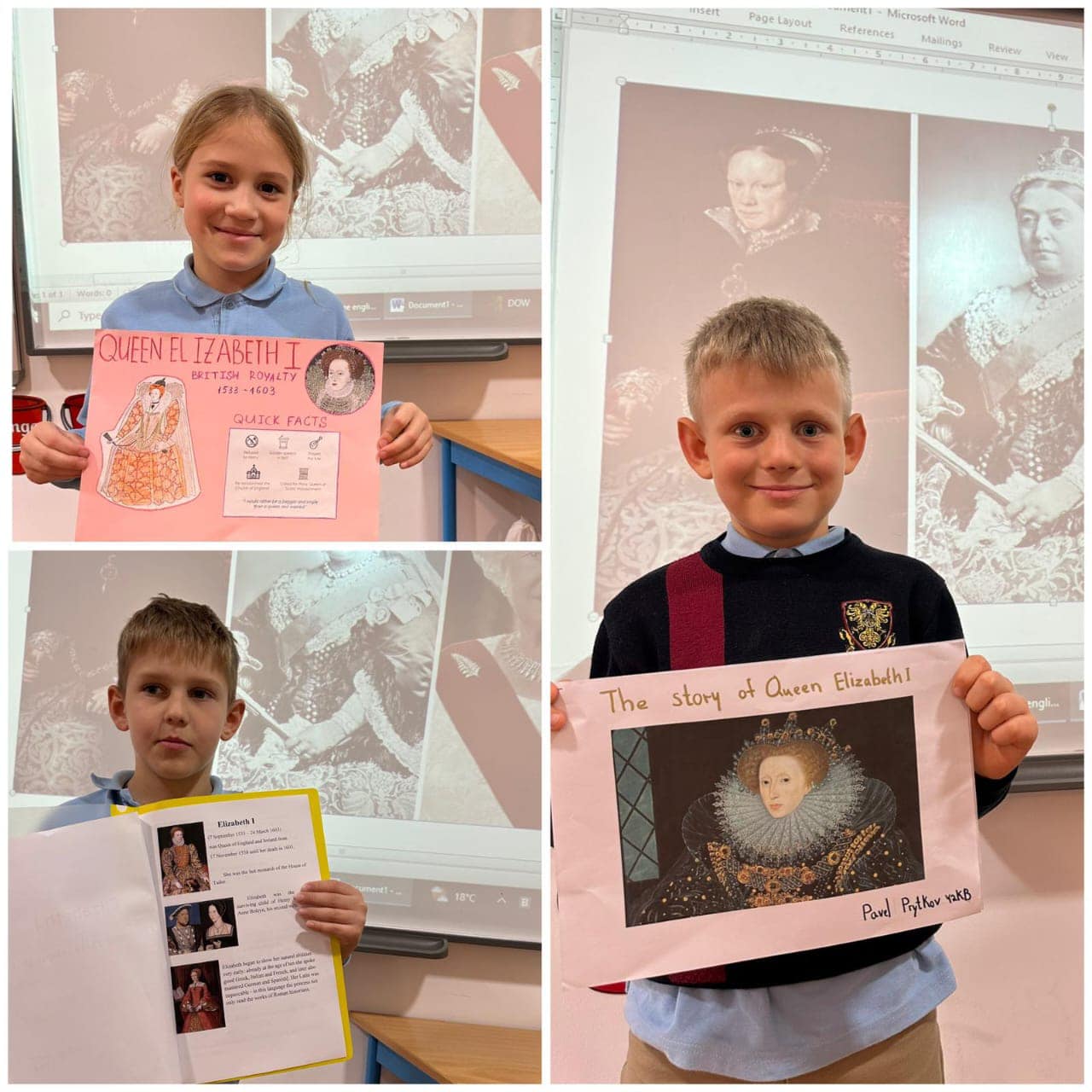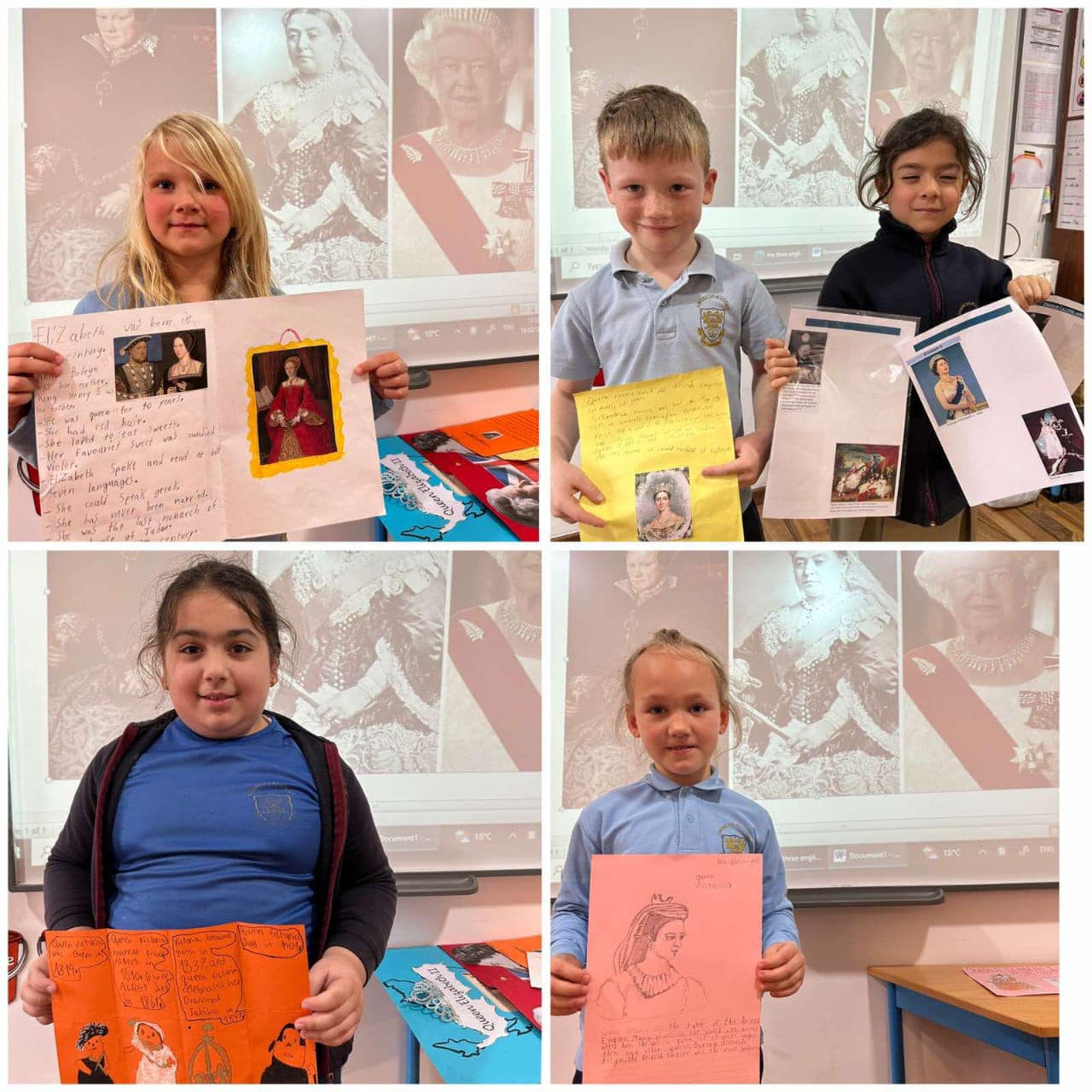 During their history topic, Y2KB learned about the three English queens , their personal lives and features of life during the three reigns. Children were asked to write about each monarch’s character and then they presented their projects in front of the class.